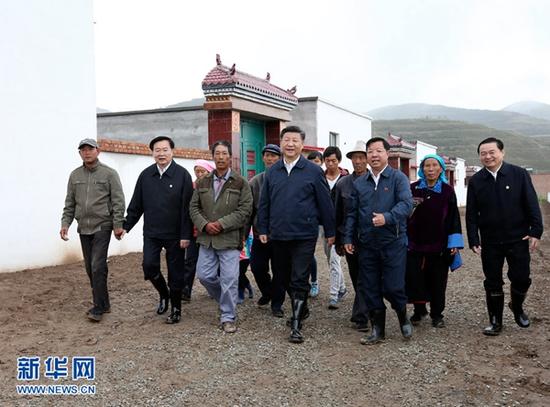这是8月23日上午,习近平总书记在海东市互助土族自治县五十镇班彦村新村建设工地考察易地扶贫搬迁情况。 新华社记者 庞兴雷 摄