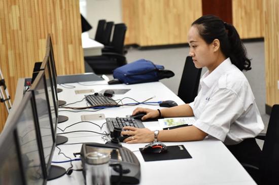 8月23日,青海省环保厅自然生态保护处工作人员丁玲玲在操作电脑。新华社记者 吴刚 摄